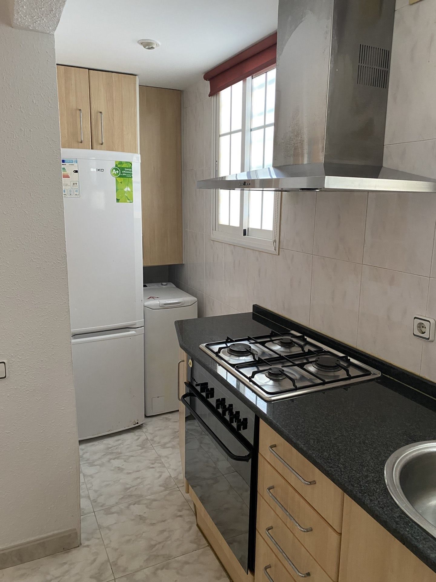 El estudio cuenta con dos habitaciones luminosas, perfectas para descansar o trabajar, y un baño equipado con ducha. La cocina dispone de muebles modernos y electrodomésticos de calidad, brindando un ambiente agradable para preparar tus comidas.